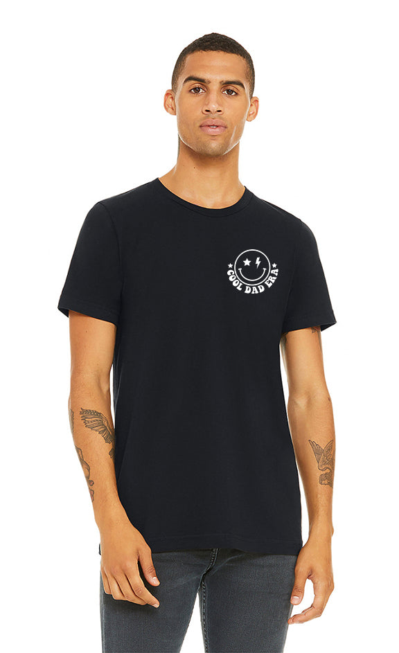 Front: Features smiley Face with lighting bolt with text "Cool Dad Era"
