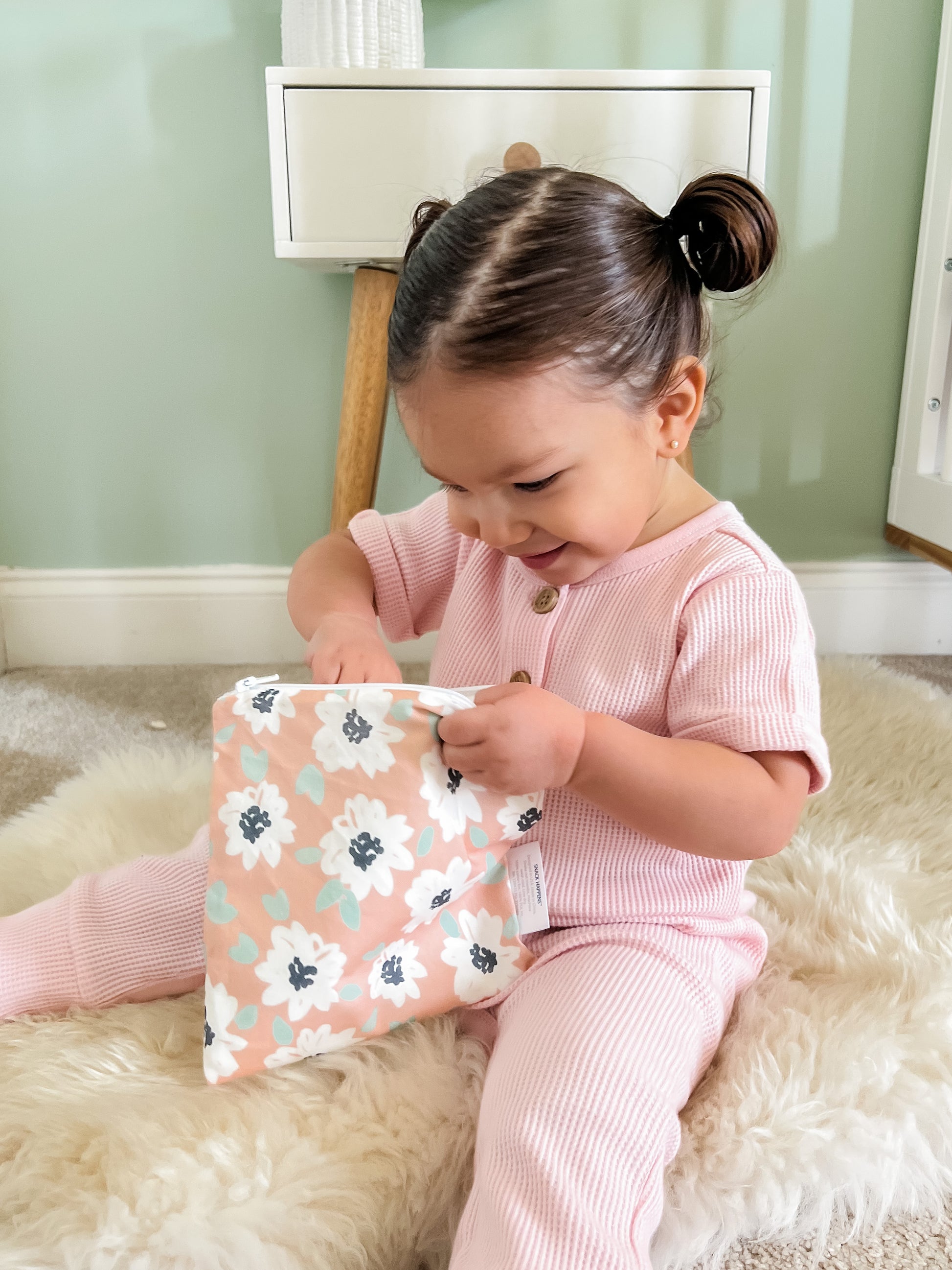 Not just for food, this bag is great for stashing electronics, keys, makeup, toiletries and endless other possibilities. The zipper tops allow for silent snacking and are ideal for little hands.