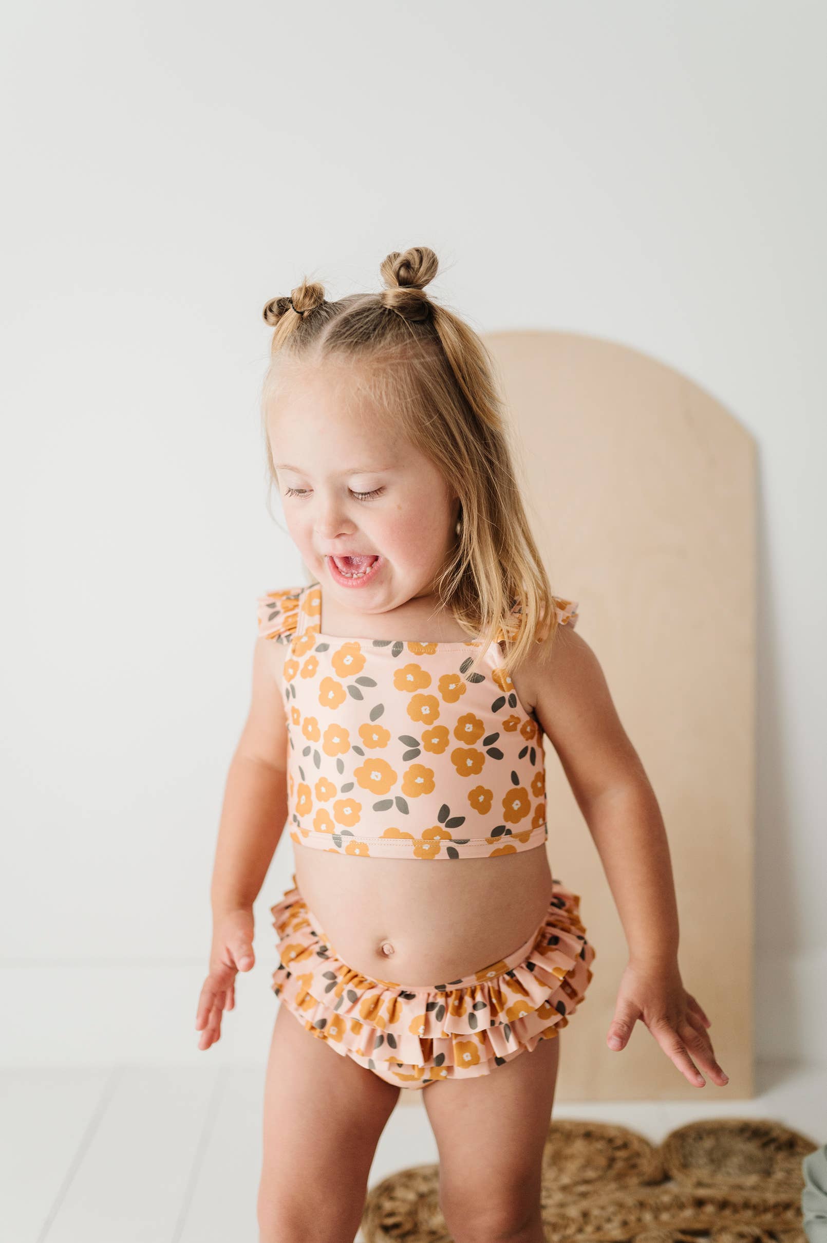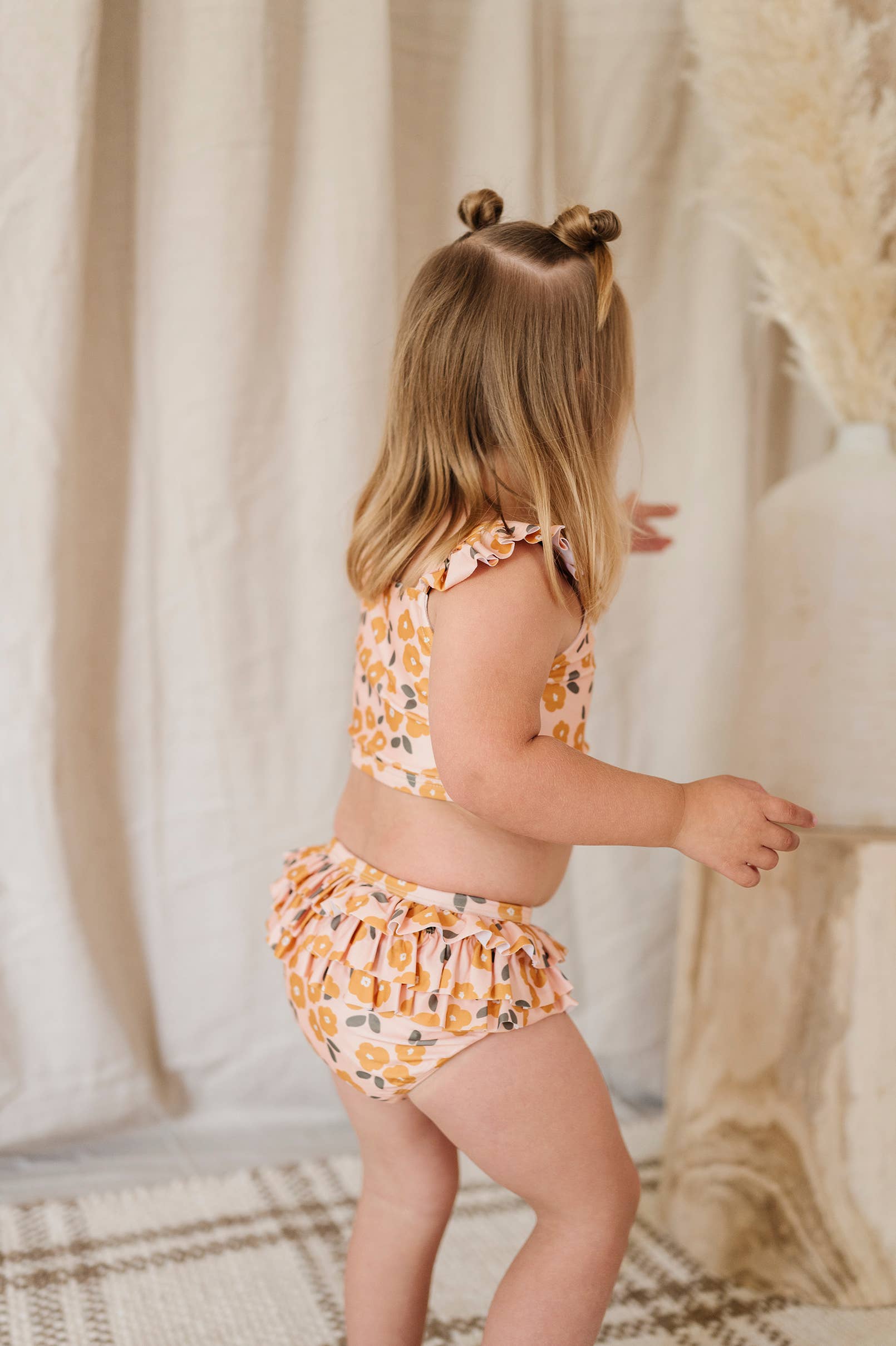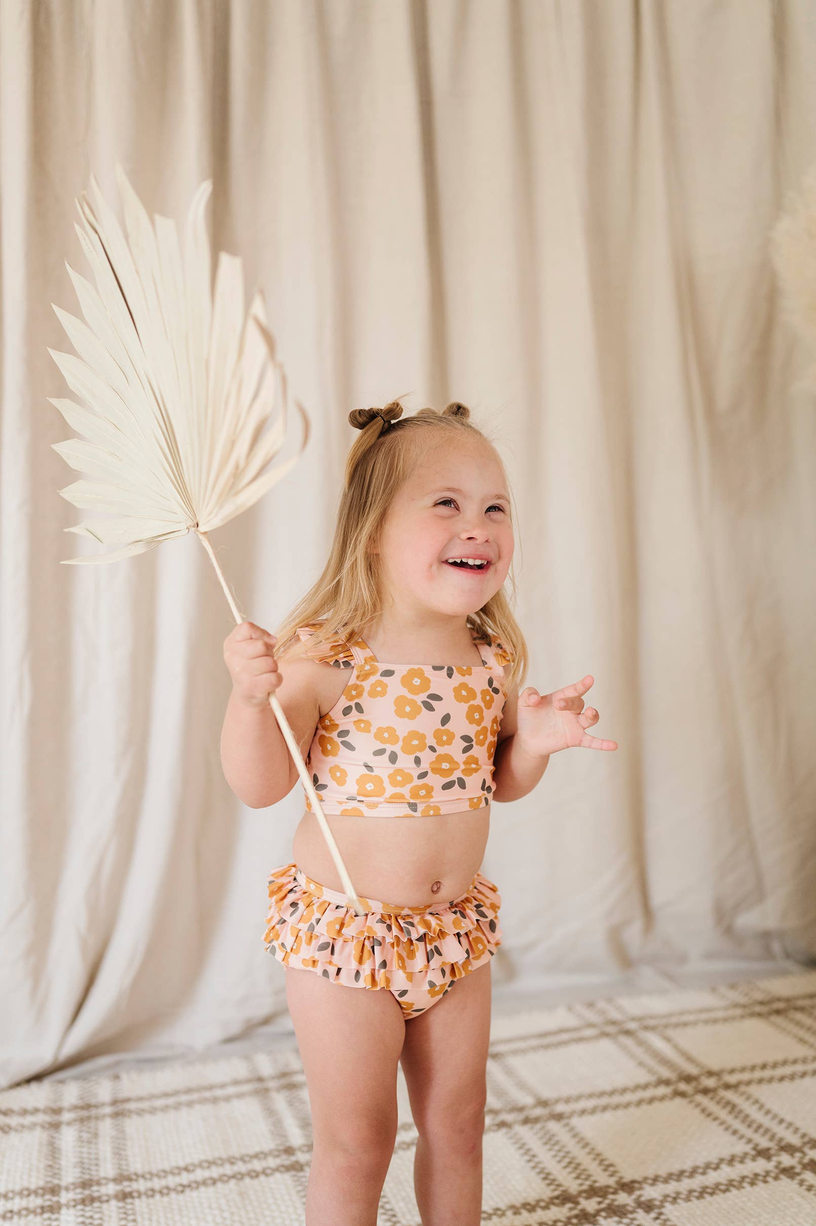 Girl's Two-Piece Ruffle Swim Set in Gold Floral