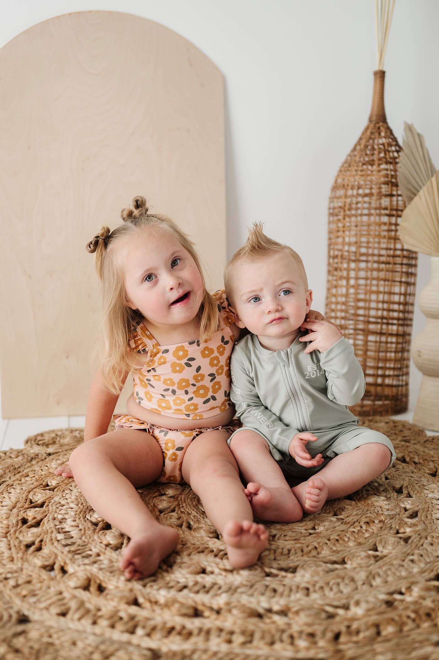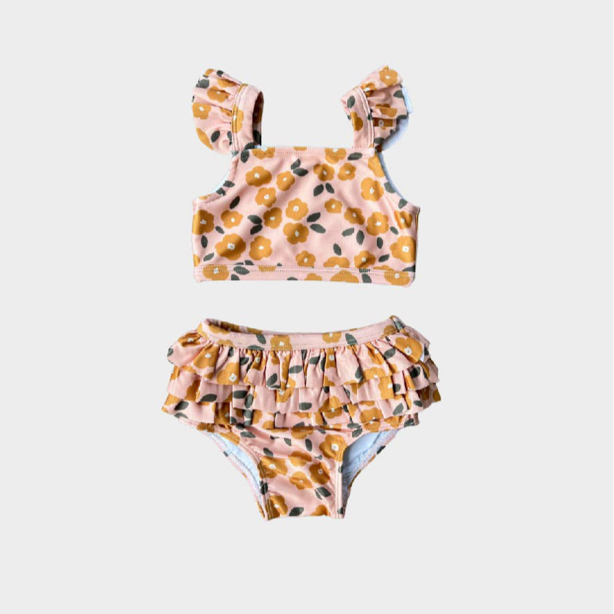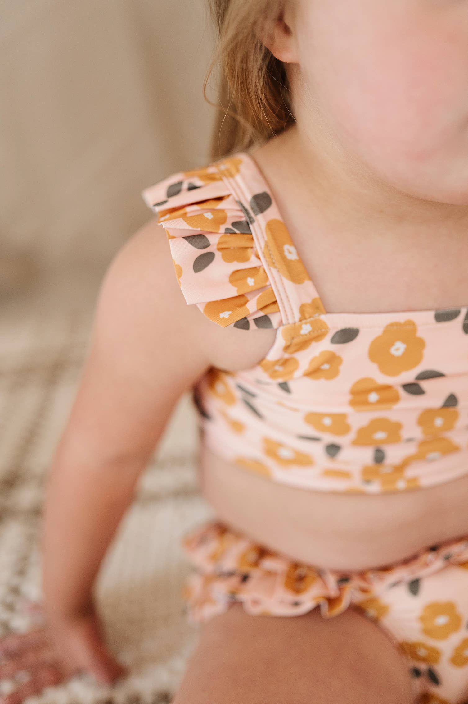 Girl's Two-Piece Ruffle Swim Set in Gold Floral