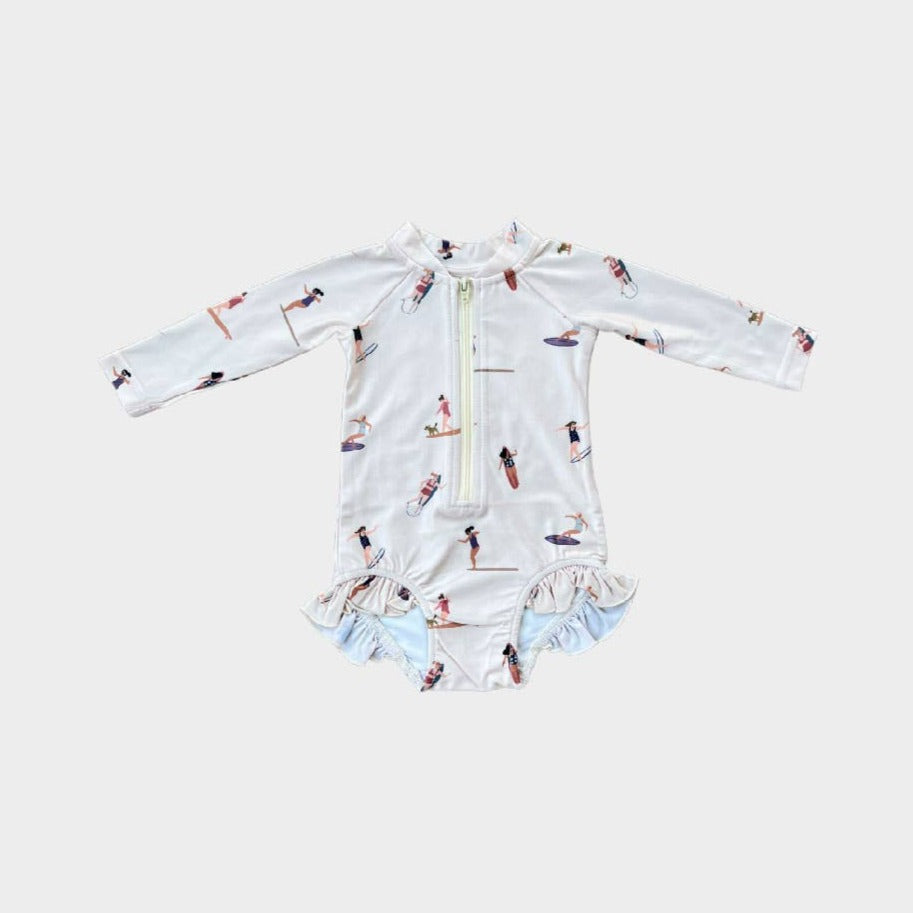NEW! Girl's One-Piece Rashguard Swimsuit in Print "Girl's Surf"