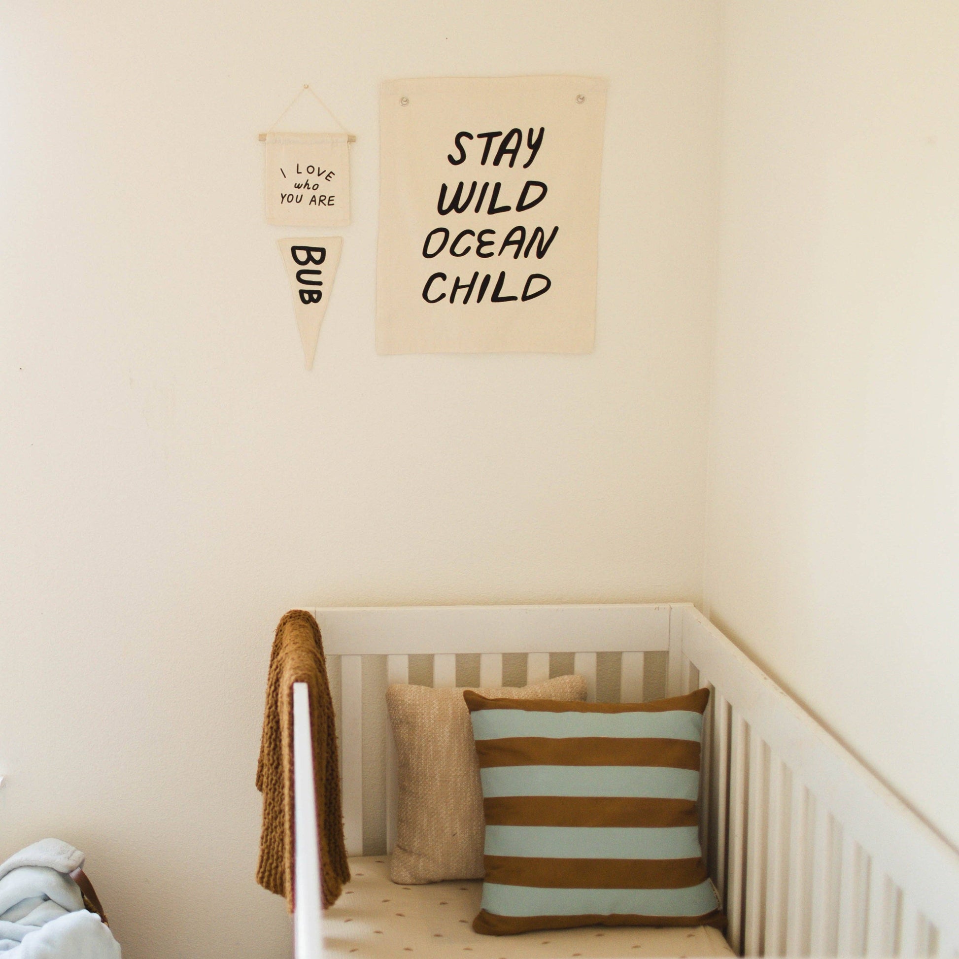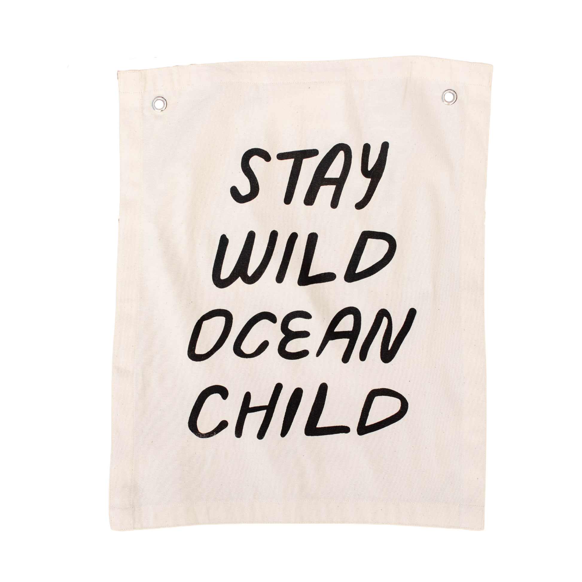 "Stay wild ocean child" Canvas Banner | Wall Flag Sewn and screen printed by hand on natural canvas by Kenyan artisans